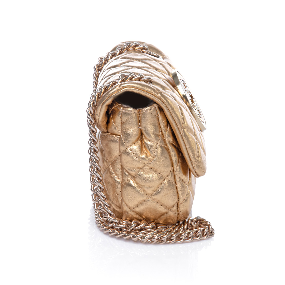 BOLSA DOURADA PEQUENA COURO ALÇA CORRENTE OLIVIA