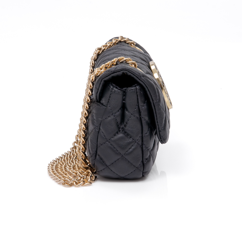 BOLSA PEQUENA PRETA COURO MATELASSÊ OLIVIA