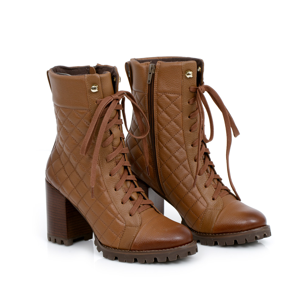 BOTA MARROM SALTO BLOCO DE COURO MATELASSÊ